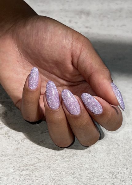 - Spotlight – Lilac shades are big on barely-there versatility and understated cool every time, and Spotlight is no exception. A cool-toned lilac light-up glitter that’s playful and wearable. This is a showstopper shade that you’ll have fun wearing.