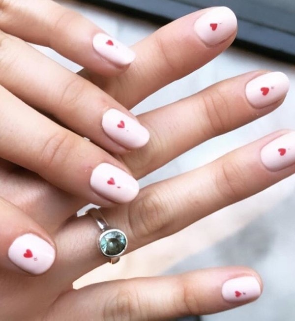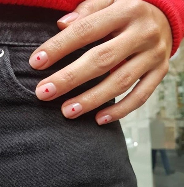 - Avѐc Amour: This nail art design combines a chic coloured manicure with a delicate heart adornment and a touch of sparkle.