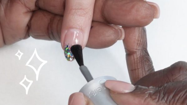 Brush up on your glitter application with Gelish Clear Brush-On Structure Gel with this speedy tutorial… Gelish products are available via www.gsgroupuk.co.uk
