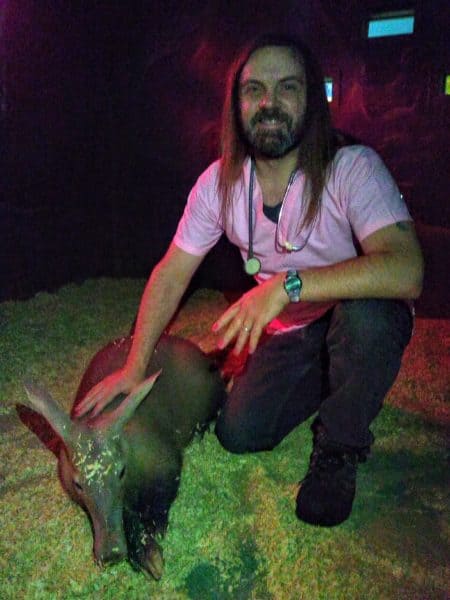 Hamish – vet nurse with aardvark @sheprethwildlifepark near Cambridge