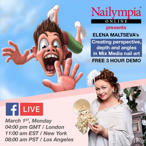 This year in support of Nailympia Online, Elena will be judging on the panel next week when the event closes, as expected. However, Elena has also offered to present a 3-hour live stream onto the Nailympia official Facebook page from 4pm (GMT UK time) on Monday 1st March .
